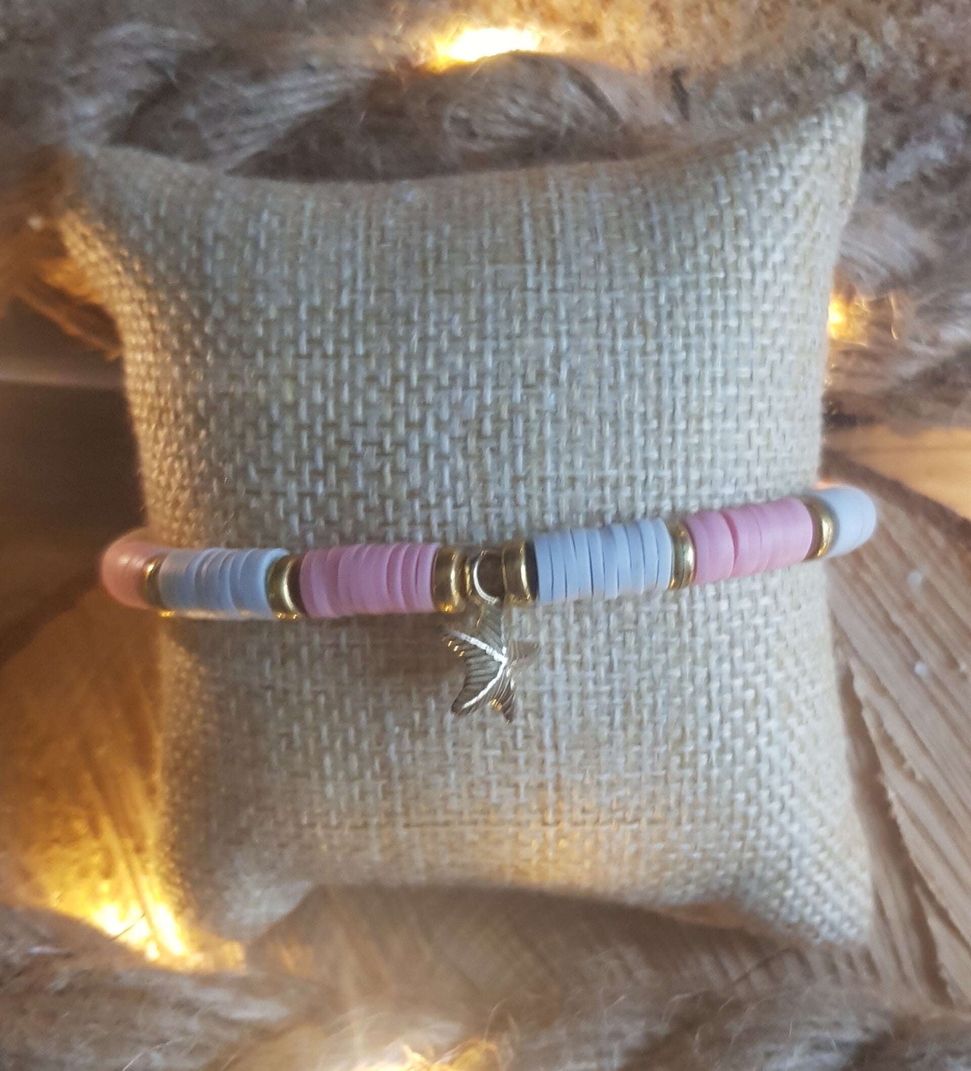 Bracelet en perles de heishi avec breloque.